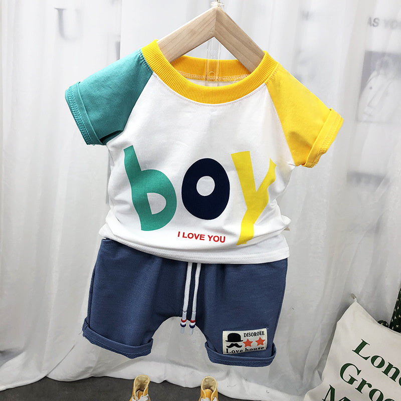 2024 New Product: Little Boys' Korean Style Western Short Sleeve Summer Collection with Children's Printed Two Piece Set
