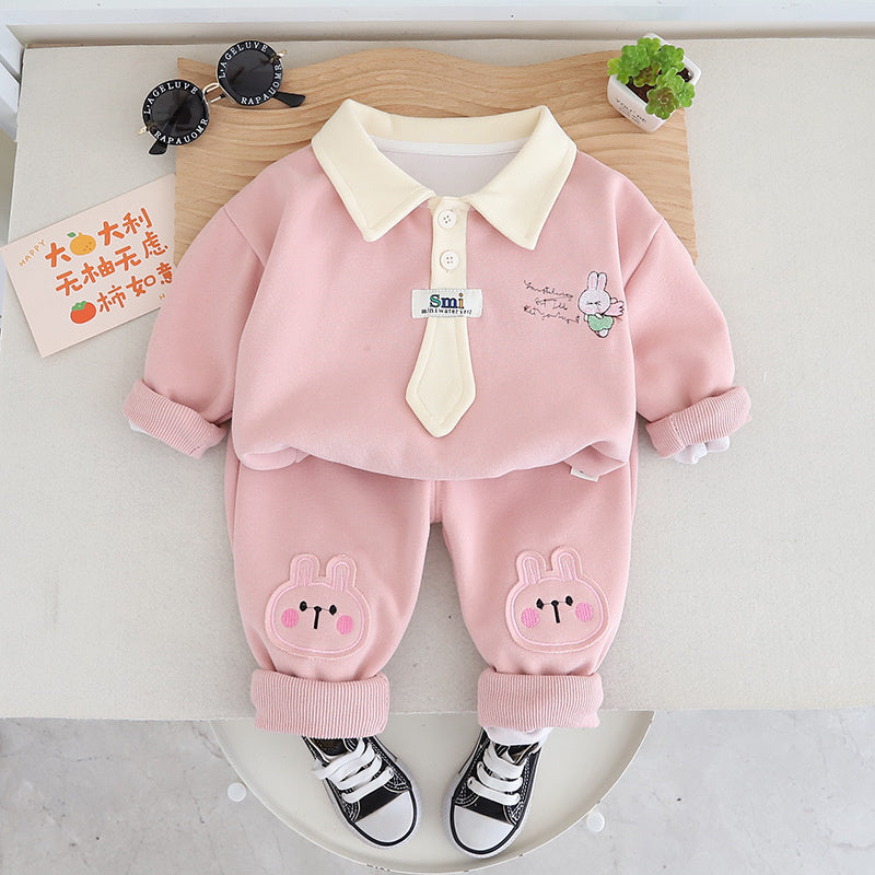 and Girls' Autumn Clothing 2024 New Cute Children's Baby 1-3 Years Old 4-piece Western Style Rabbit placket Set