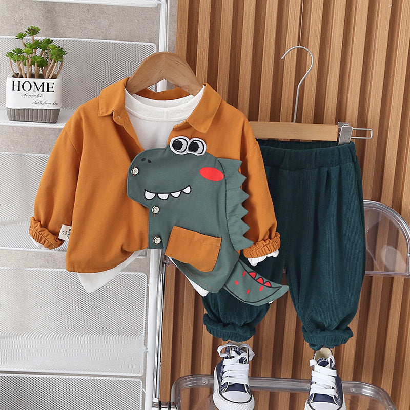 Boys' cartoon dinosaur three piece set infants and children, 5 boys' clothing autumn for children aged 0-1-2-3, outerwear
