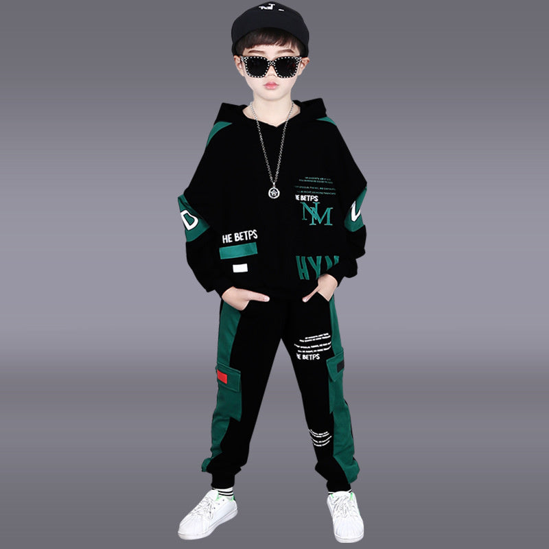 Boys' Elegance 2024 New Handsome Middle and Large Spring Clothing Hoodie Children's Two piece Sportswear Set