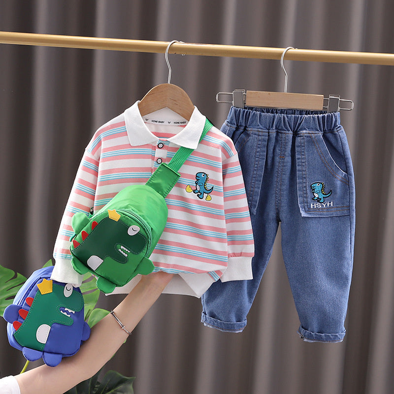 Boys' outfit lapel dinosaur set 2022 new style for spring and autumn 4 baby 5 handsome children's clothing trend