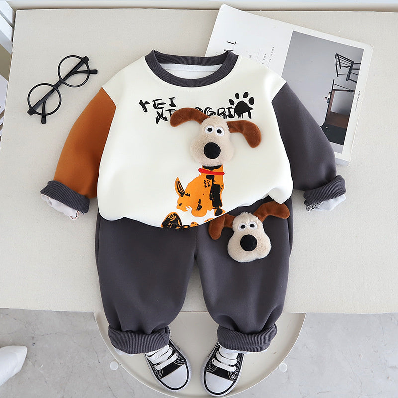 Boys' Sports Set 2024 New Fashionable Children's Spring and Autumn Dog Round Neck Sweater Two Pieces