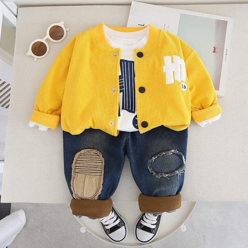 Boys' Spring New Korean Long Sleeve 1 Children's Three piece Set 3-year-old Baby Clothes Fashionable Cardigan Coat Trendy