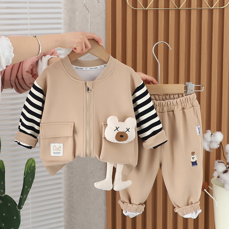 Children's boys' clothing set, cool and fashionable, trendy spring baby children's clothing, hanging bear three piece set