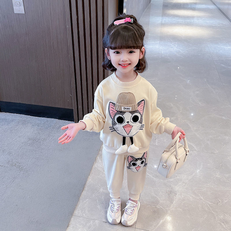 Fashion baby sports children's spring clothes, cartoon two-piece set, internet famous and stylish children
