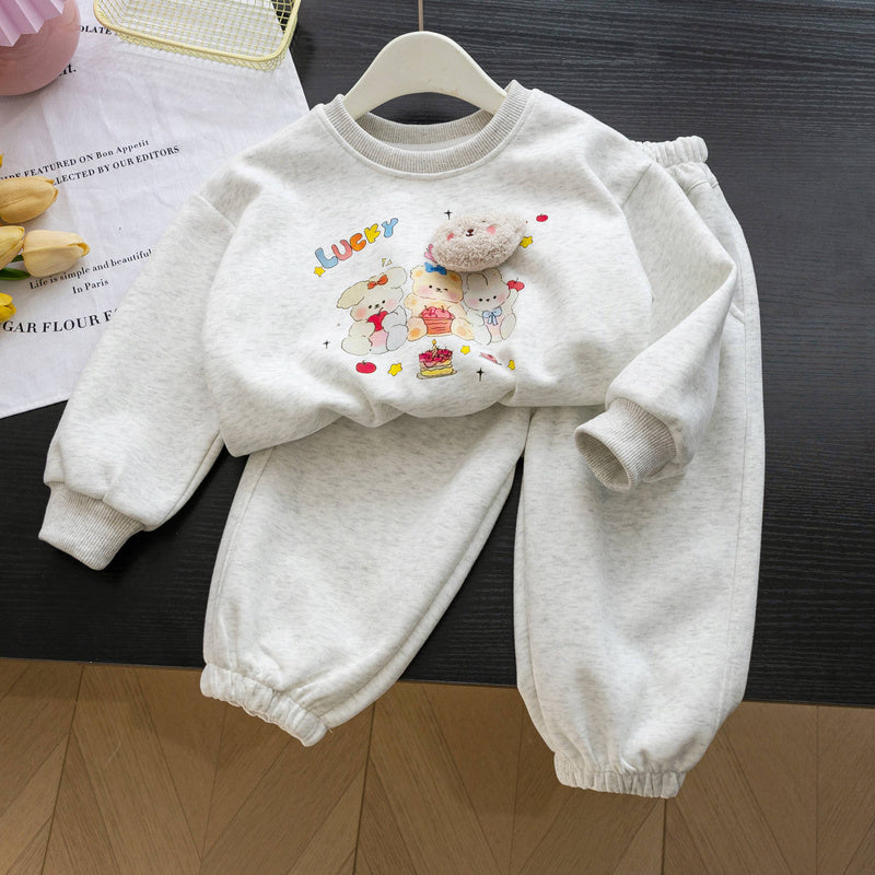 Girls' Baby Hoodie Set 2024 New Style Children's Clothing, Western Style, Pure Cotton, Long Sleeve, Infant Toddler, Korean Spring and Autumn
