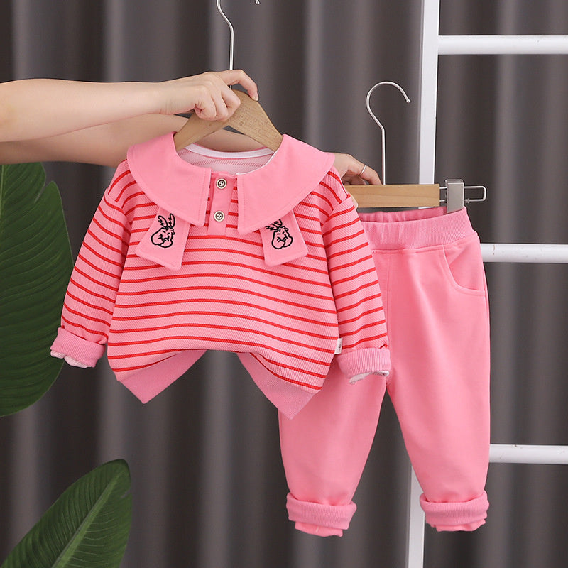 Girls' spring styles, Western style, children's explosive street striped top, primary and secondary school hoodie, doll collar, autumn clothes