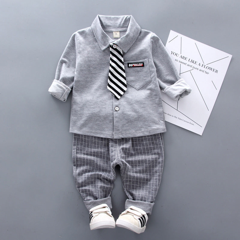 New two-piece set of trendy spring small and medium-sized handsome shirt dress boys, children's clothing for ages 1-2-3